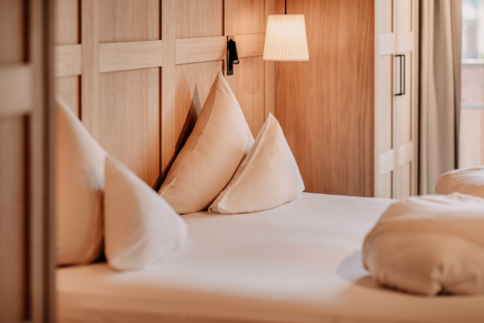 - edler Holzboden und moderne Holztäfelung in Kassettenoptik